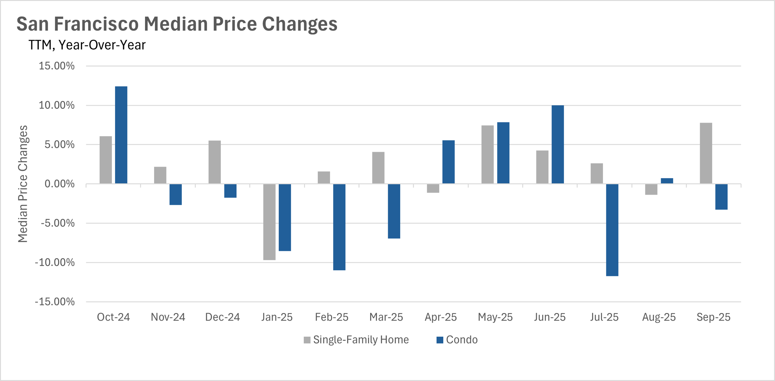 Last month we saw a big upward swing in median sale prices for single-family homes in San Francisco