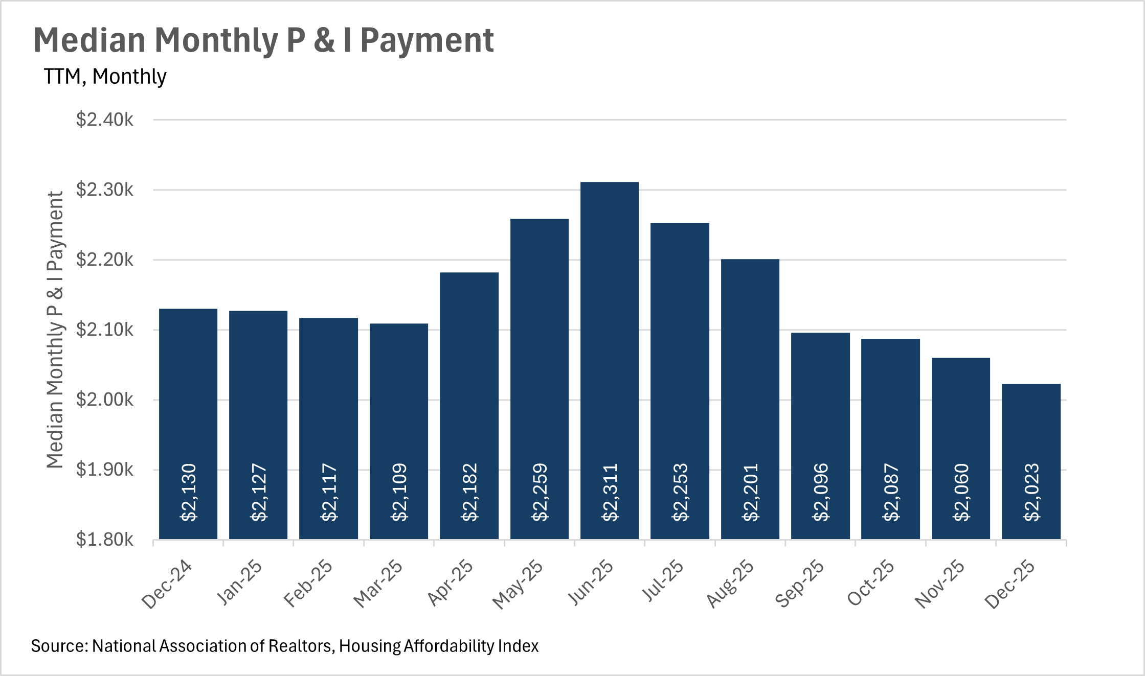 As interest rates fall, median monthly P&I payment has fallen too!
