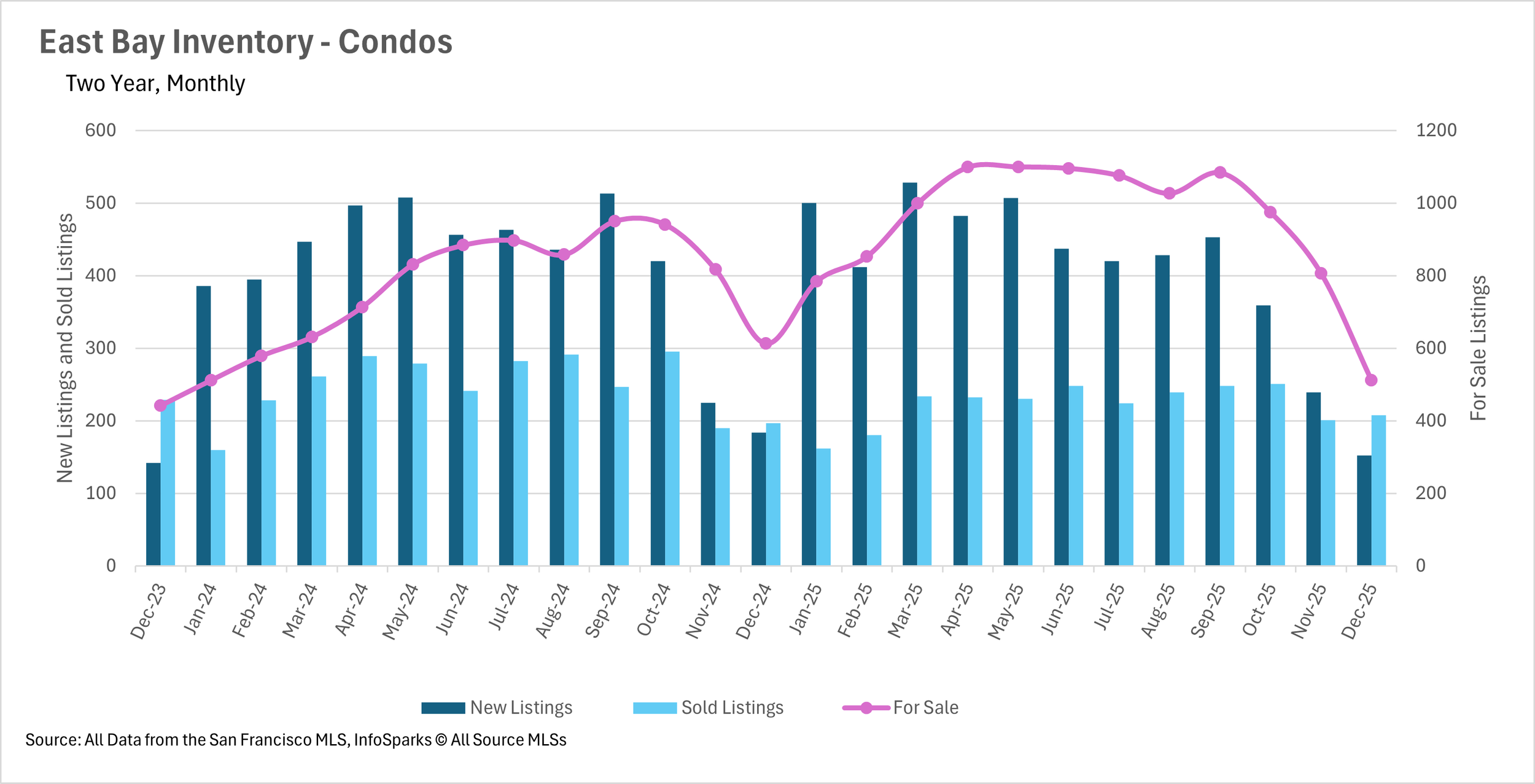 The North Bay saw single-family inventory crater by 43.56% month-over-month and 38.85% year-over-year to just 1,407 homes, while condo inventory fell 36.83% month-over-month and 27.99% year-over-year to merely 211 units. This decline was exacerbated by new listings plummeting 51.19% year-over-year for single-family homes and 54.93% for condos. The East Bay showed relatively modest but still significant declines, with single-family inventory down 18.70% year-over-year to 1,265 homes and condo inventory falling 16.48% to 512 units. Across all regions, the magnitude of inventory decline exceeded typical seasonal patterns, suggesting that buyers who had been waiting on the sidelines throughout 2025 finally began acting, while new listings dried up dramatically as sellers held back during the holidays.