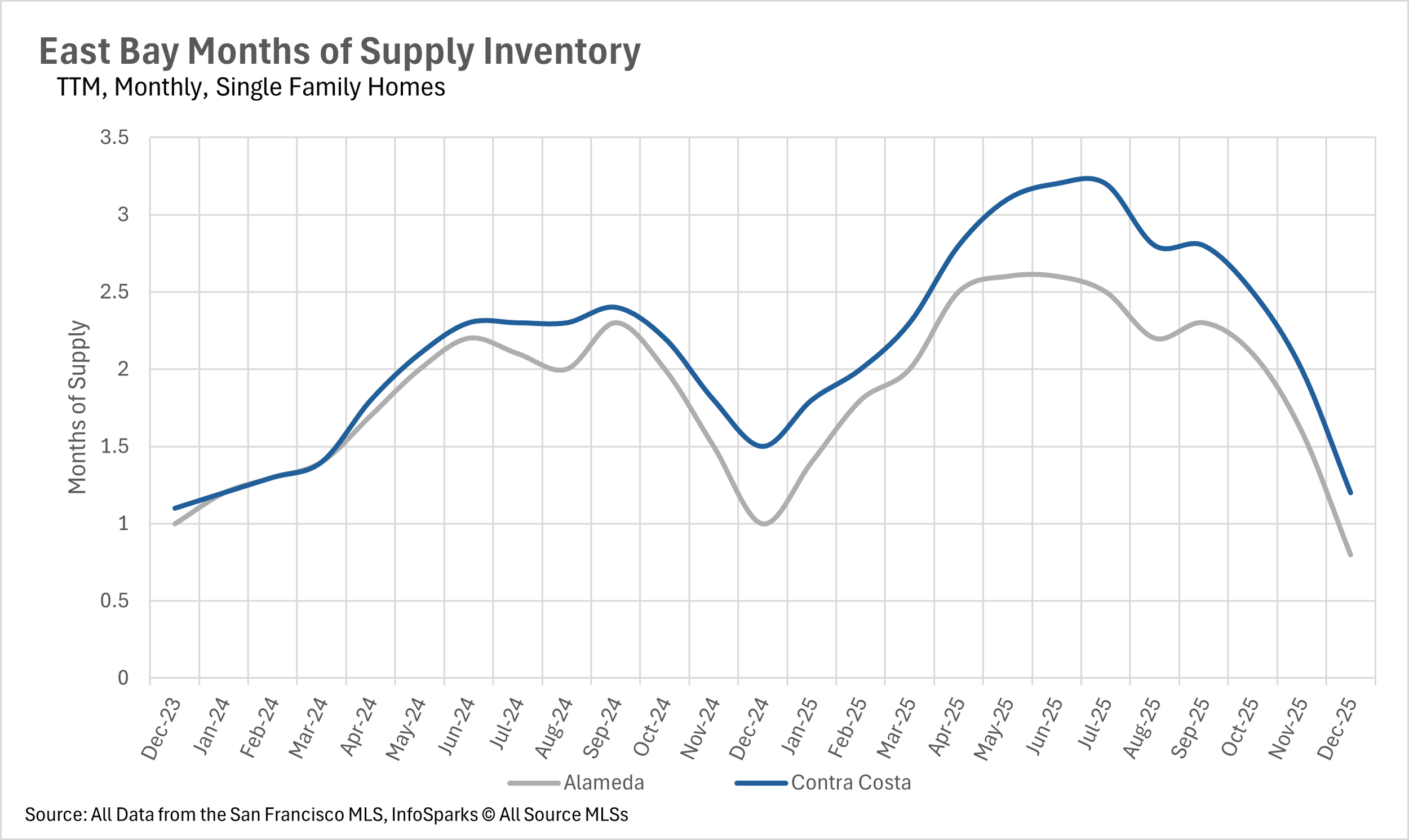 The Bay Area closed out 2025 with unprecedented inventory contraction, with most regions experiencing 20-40% year-over-year inventory declines as the holiday season accelerated a dramatic shift toward seller's markets.